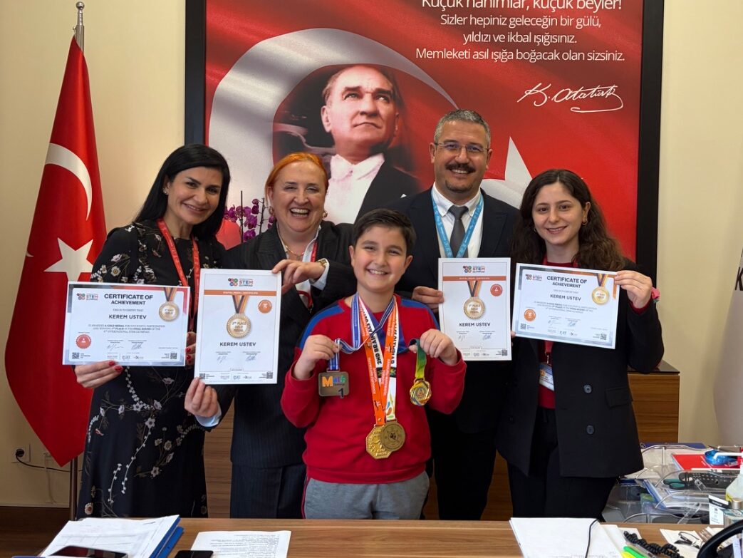 Uluslararası STEM Olimpiyatları’nda 38 bin öğrenciyi geride bırakarak bilim kategorisinde birinci, matematikte ise dünya üçüncüsü olan 4. sınıf öğrencisi Kerem Üstev, temmuz ayında Roma’da yapılacak finalde Türkiye’yi temsil edecek. Matematiği çok sevdiğini söyleyen Kerem, gelecekte Cahit Arf gibi çok iyi bir bilim insanı ve matematikçi olmak istiyor.