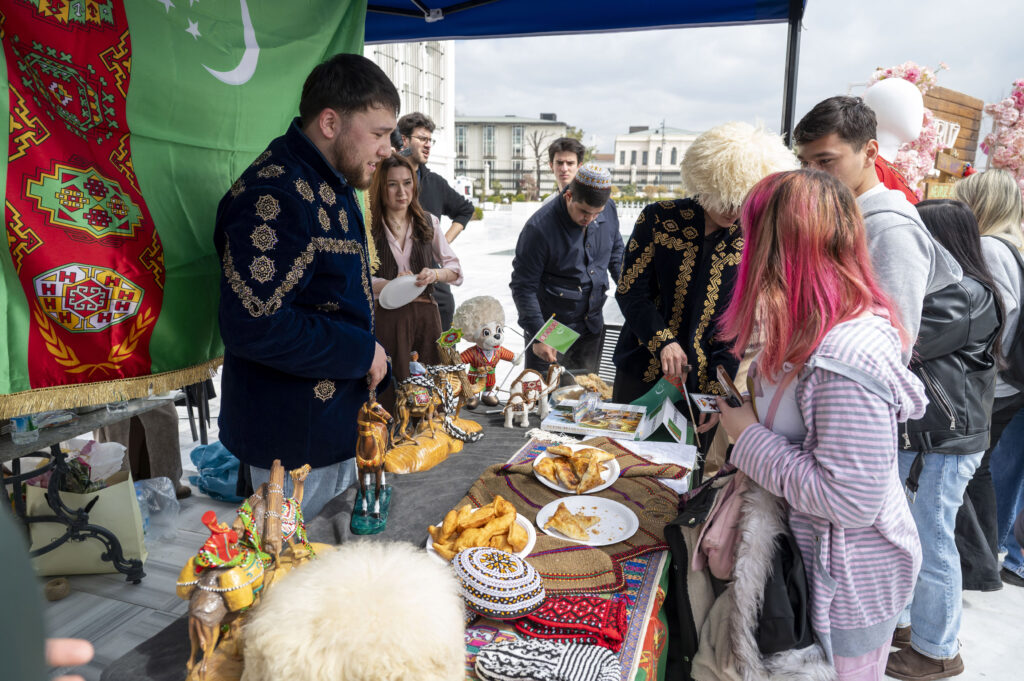Baharın gelişinin müjdecisi olan Nevruz etkinliği için Türki Cumhuriyetlerden öğrenciler, ülkeleri adına stantlar açarken alan girişine Orta Asya’daki Türk kültürünü temsil eden “Otağ” tipi çadır kuruldu. Türki Cumhuriyetlerdeki bazı kültürel objeler ve Nevruz’a ait simgelerin sergilendiği stantlarda, katılımcıları geleneksel kıyafetleriyle karşılayan öğrenciler, ülkelerine özgü yiyecek ikramları yaptılar. Şölen havasında gerçekleşen etkinlikte Türkiye standında BAU Gastronomi ve Mutfak Sanatları Bölümü öğrencilerinin öğretim üyeleriyle birlikte hazırladıkları keşkek, mücver ve çeşitli tatlılar ikram edildi.